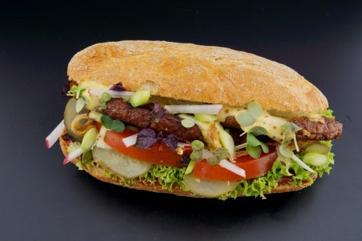 2Senf mit veganer Mayonnaise glatt rühren. Auf die obere Baguettehälfte streichen und bereits belegte Zutaten damit bedecken.