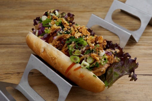 Der Hotdog Deluxe kann auch mit anderen frischen Toppings garniert werden: Jalapenos, Mangowürfel, Brotchips, ...