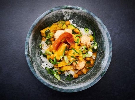 4GARDEN GOURMET VEGANE FILET-STREIFEN hinzufügen und mit der Currysauce auffüllen. 5 Minuten bei geringer Hitze kochen.