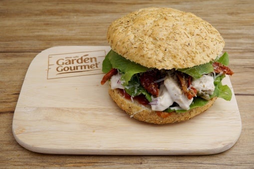 2Focacciabrötchen halbieren. Tomatenketchup auf die Unterhälfte des Brötchen geben. Romanasalatblätter darauf geben. Marinierte GARDEN GOURMET® vegane Filetstreifen hinzufügen. Mit roten Zwiebelringen, getrockneten Tomaten, gehackten Kapern und veganem Parmesankäse belegen. Oberhälfte des Focacciabrötchens darauflegen.