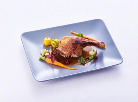 1Gänsekeulemit MAGGI RÔTIDOR WÜRZMISCHUNG FÜR FLEISCH würzen. Auf ein GN-Blech geben und im vorgeheizten Kombidämpfer bei 165°C Hitze 75 Minuten garen.