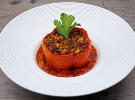 Garden Gourmet gefüllte Paprikaschote auf Fenchel-Tomatensauce