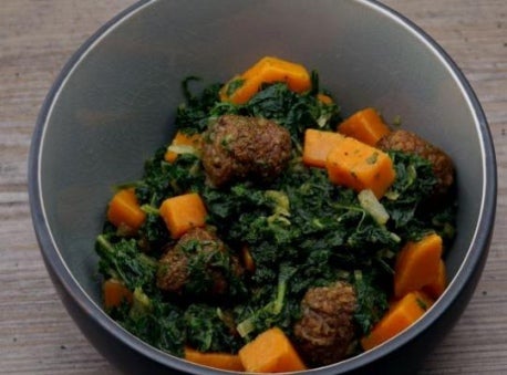 Garden Gourmet Grünkohl mit Süßkartoffelwürfel und veganen Hackbällchen