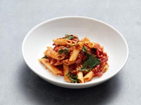 Genieße diese köstliche Kombination von Penne a la Pepperoncini mit GARDEN GOURMET® veganes Hack.
