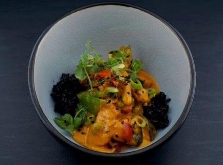 Mit Venere Reis servieren und mit schwarzem Sesam und Affilla Kresse garnieren. Alternativ können auch andere Reissorten zu diesem Gericht verwendet werden.
