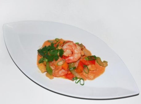 Wasser erhitzen, MAGGI PREMIUM BOUILLON GEMÜSE hineingeben und aufkochen. Die Garnelen zum Gemüse geben, die Bouillon und MAGGI THAI RED CURRY hinzugeben und mit Zitronenabrieb und Salz abrunden.