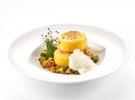1Wasser und Milch erhitzen. CHEF FLÜSSIGES KONZENTRAT GEMÜSE hineinrühren und aufkochen. Polentagrieß hinzufügen und bei geringer Hitzezufuhr den Grieß komplett ausquellen lassen. Olivenöl einmontieren und Knoblauch mit dem Parmesan unterrühren. Polentamasse in ein gefettetes GN-Blech geben und bei trockener Hitze im Kombidämpfer garen. Anschließend ausstechen oder mit dem Messer portinonieren.