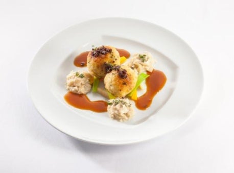 Gefüllte "Bergsteigerknödel" auf Rahmsauerkraut
