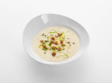Hüttensuppe mit Appenzeller, Lauch und Bauernbrot-Crôutons