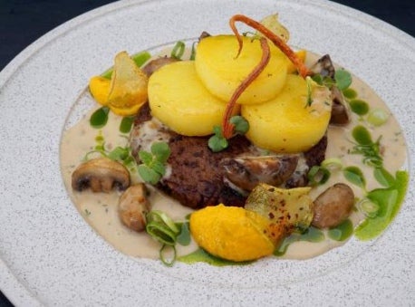 Mit CHEF FLÜSSIGES KONZENTRAT PILZ, CHEF SIGNATURE SCHWARZE KNOBLAUCHPASTE, CHEF SIGNATURE WEIßWEINREDUKTION abschmecken.