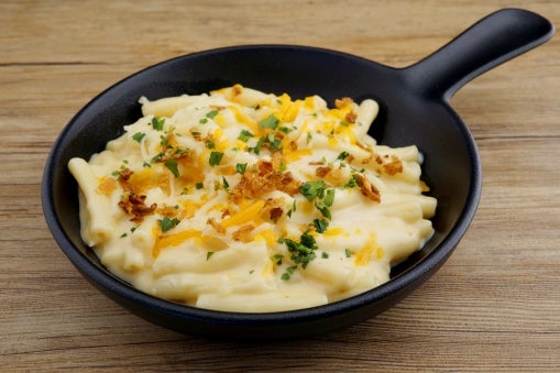 2Cheddar- und Emmentaler Käse einstreuen und zusammen mit den gekochten Maccheroni-Nudeln mischen und erhitzen.