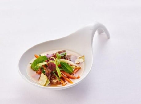 "Pho-Bo" Rindfleischsuppe mit Reisbandnudeln, Limone, Minze und Ingwer