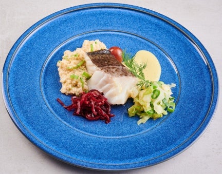 Poschiertes Dorschfilet, Senfsauce, Spitzkohl