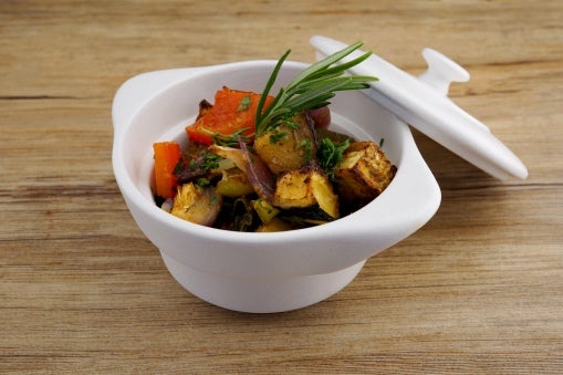 1Alle Zutaten miteinander mischen. In ein GN Blech geben und 20 Minuten bei 200° C im vorgeheizten Ofen garen.