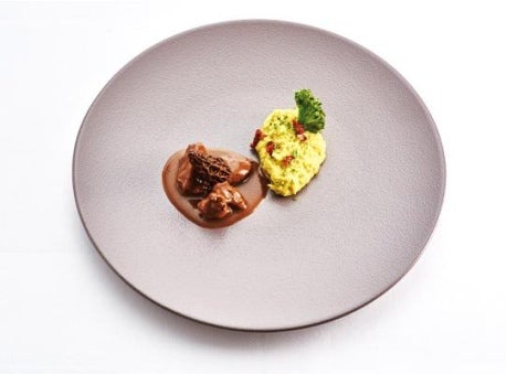 3Morcheln abgießen, den Fond auffangen. Morcheln klein schneiden und zum Ragout geben. Fond durch ein Tuch in die Sauce geben. Sahne einrühren und mit Nestlé Professional Profi Binder weitere vier Minuten kochen.