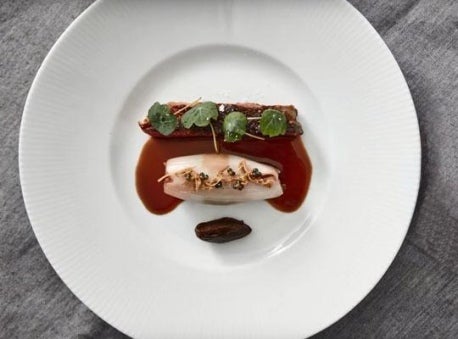 Zwiebelmarmelade kann auch in blanchierten Eschalotten serviert werden. Mit Wasserkresse garnieren.