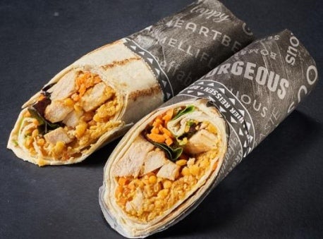 Rote Linsen Wrap mit vegetarischen Filetstreifen