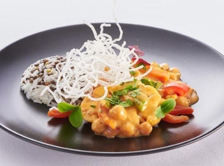 THOMY COMBIFLEX erhitzen. Zwiebeln und Currypaste darin anschwitzen. Mit Wasser auffüllen und MAGGI KLARE GEMÜSEBRÜHE hineinrühren. 3 Minuten kochen.
