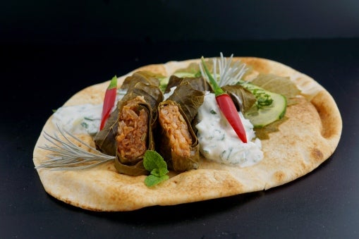 1Weinblätter wässern. Geschmorte Schalottenwürfel, BUITONI Tomatensugo, gekochter Reis, CHEF schwarze Knoblauchpaste vermengen. GARDEN GOURMET® Sensational™ Burger grob zerteilen und unterheben, mit Piment-, Paprikapulver und gemahlenen Pfeffer würzen. Auf der glatten Seite der Weinblätter verteilen. Zigarrenförmig rollen. Röllchen in einen Topf schichten. Mit Wasser und CHEF flüssiges Konzentrat Rind begießen und 45 Minuten garen.