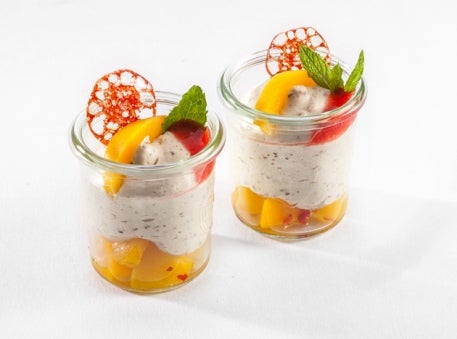 Westfälische Pumpernickel-Creme auf würzigem Pfirsichkompott